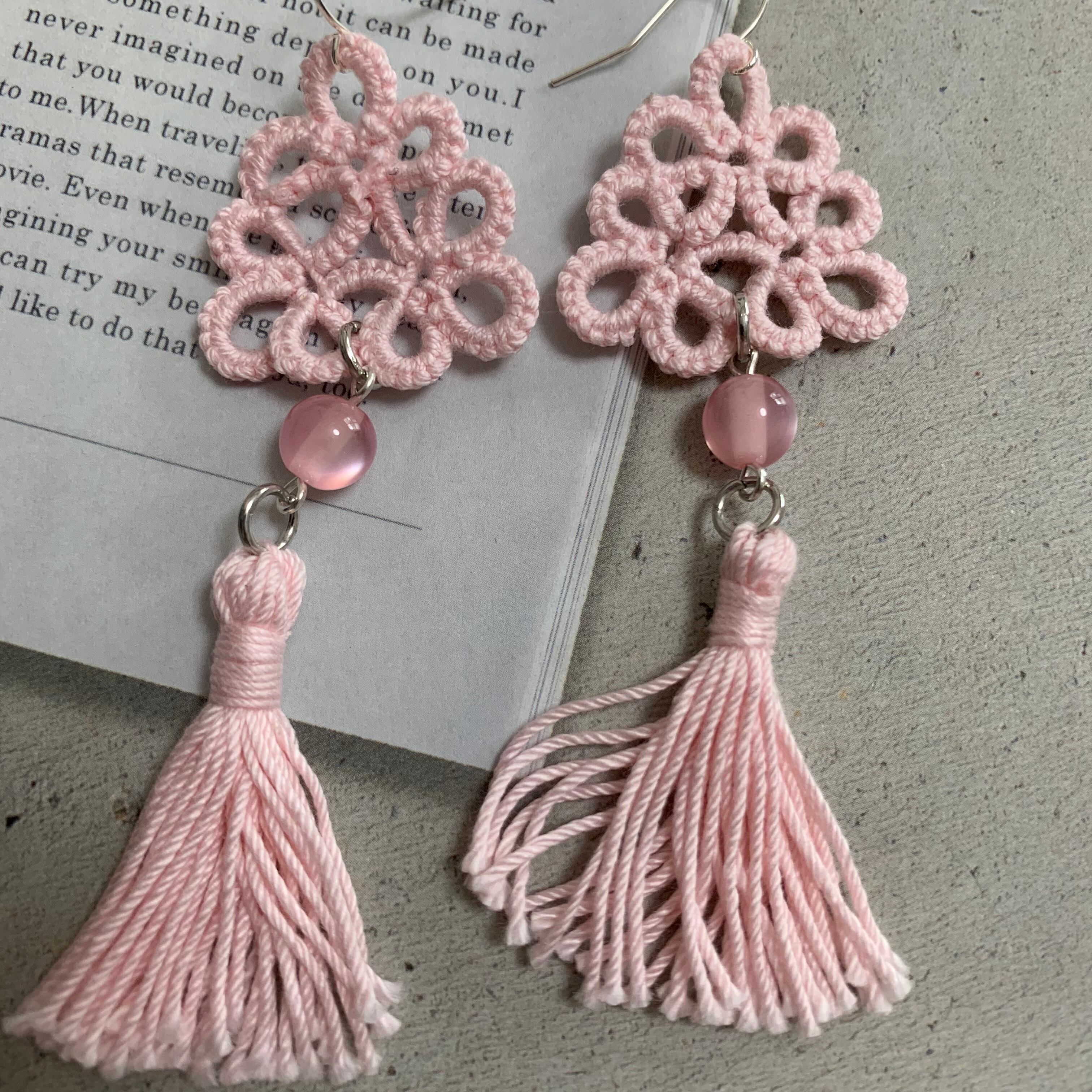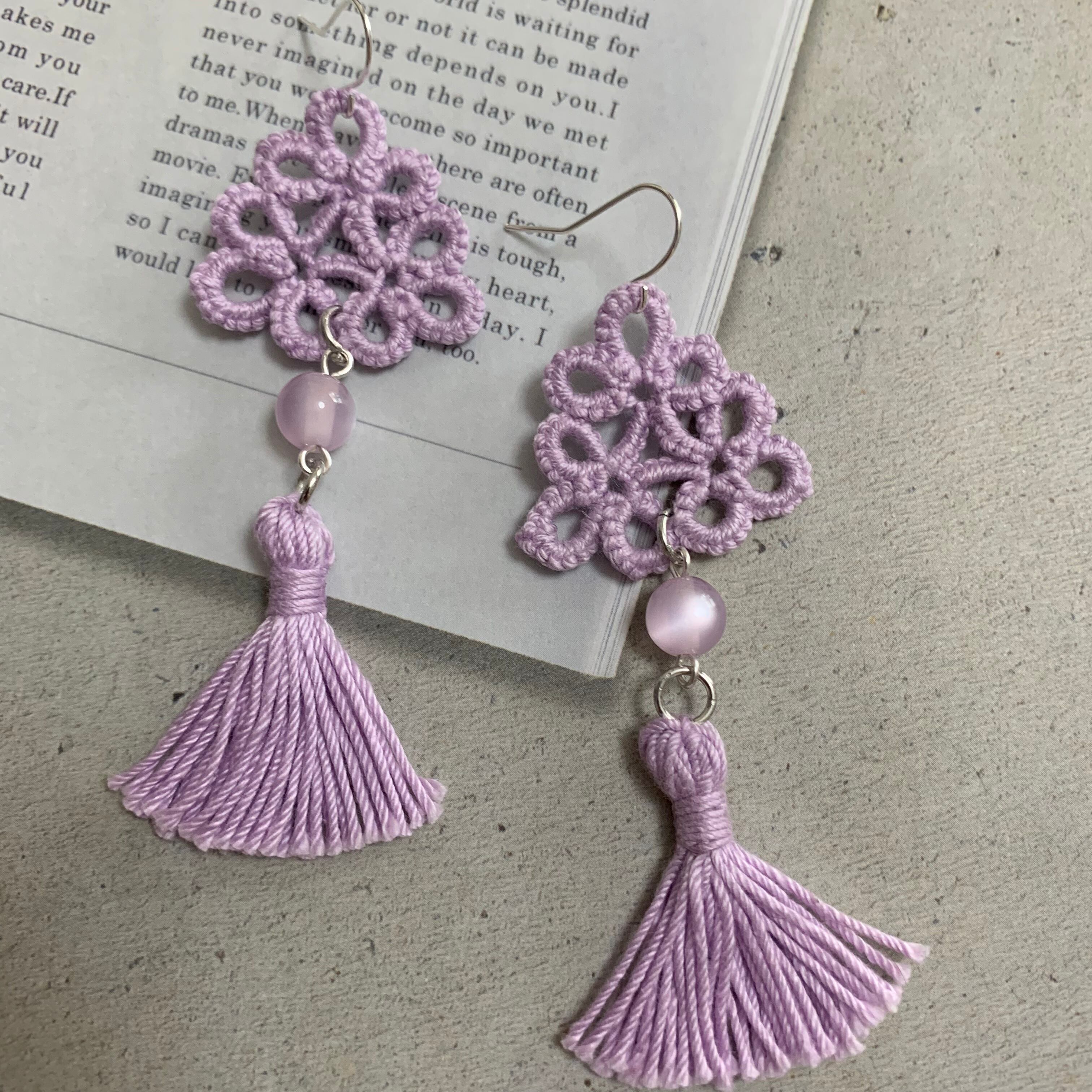 色が選べる★トライアングル イヤーアクセサリー タティングレース ピアス