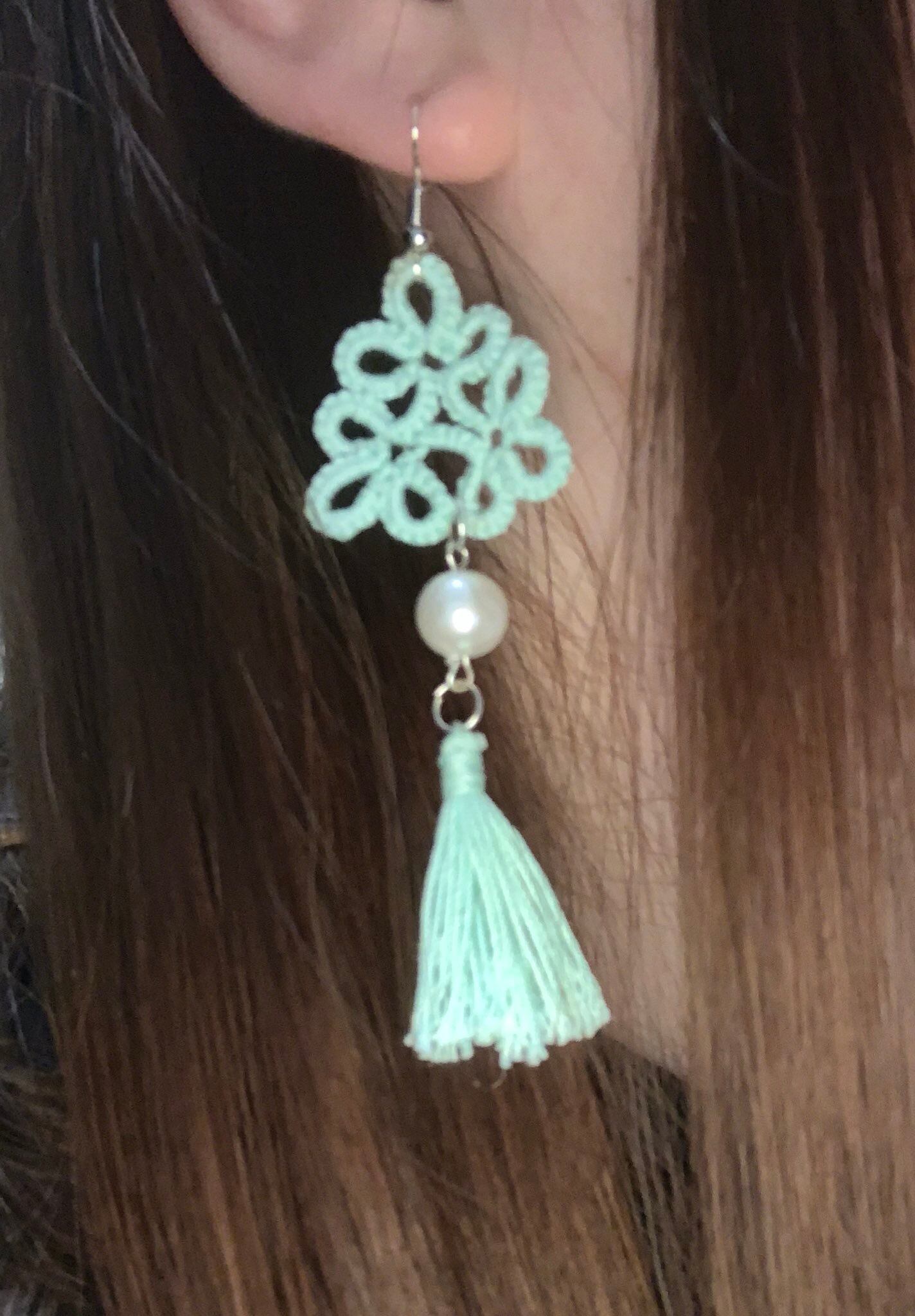 色が選べる★トライアングル イヤーアクセサリー タティングレース イヤリング